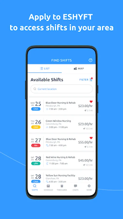 Find and apply for shifts through the ESHYFT app. Select the shifts that work for you, enjoy flexibility while doing the job you love.