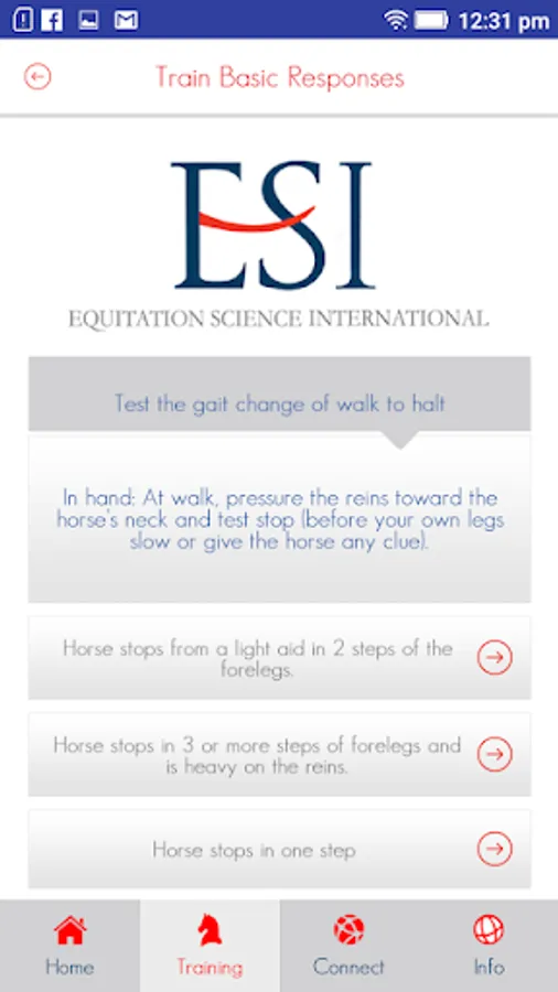 Equitation Science International (ESI) leads the world in the theoretical and practical application of Equitation Science. Test your horse training in our latest Horse Training App, addressing problem behaviours using evidence-based, ethical and sustainable methods of ESI