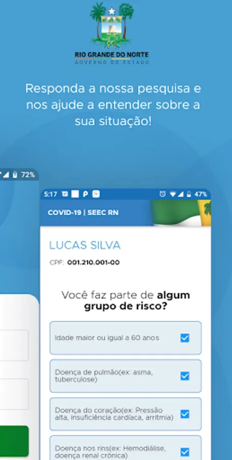 Application for servers and students of SEEC / RN (State Secretariat of Education, Culture, Sports and Leisure of Rio Grande do Norte) with the objective of monitoring symptoms of COVID-19.