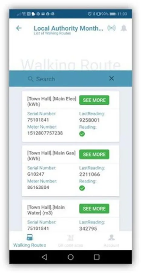The modern, easy to use app enables fast entry of manually read meter readings. Once the app is connected to your eSight Software you can download your existing walking routes so that meter readings can be entered against utility meters. Alternatively, you can attach QR codes to your meters and use the app's QR scanner to identify your meters. When you are connected to the internet, meter data from the app is synchronized to your eSight system.