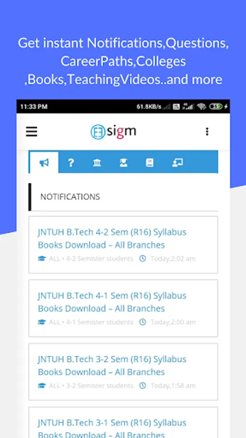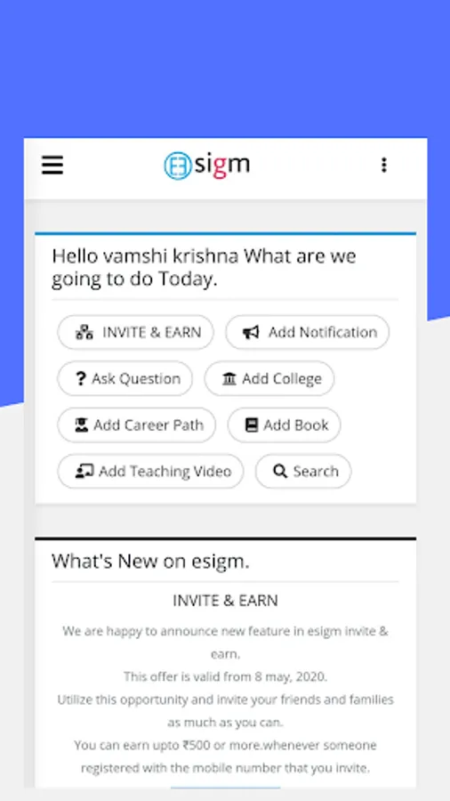 Esigm is a platform where students, lecturers, unemployment peoples can connect and share the information about education careerpaths,notifications,best colleges, universities, Teaching and learning through videos and more.