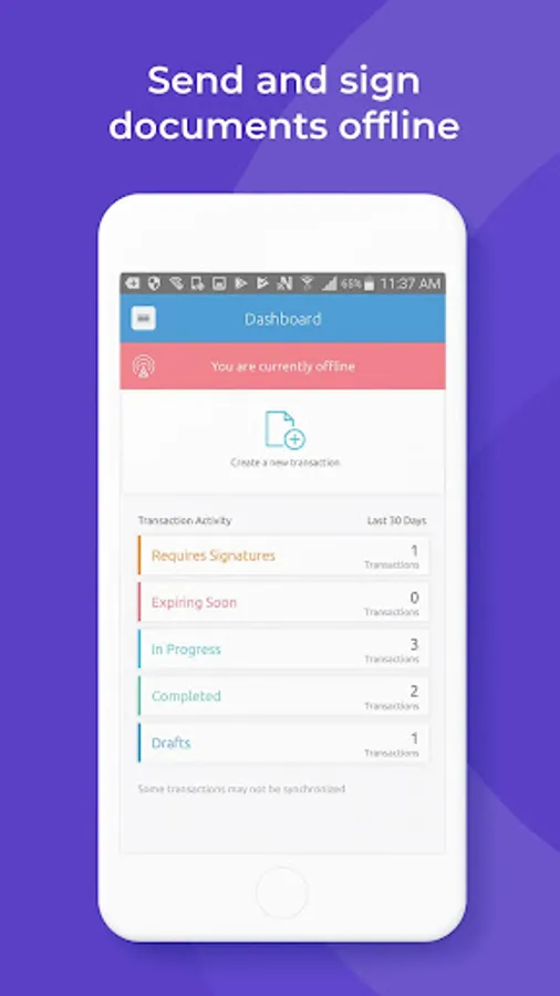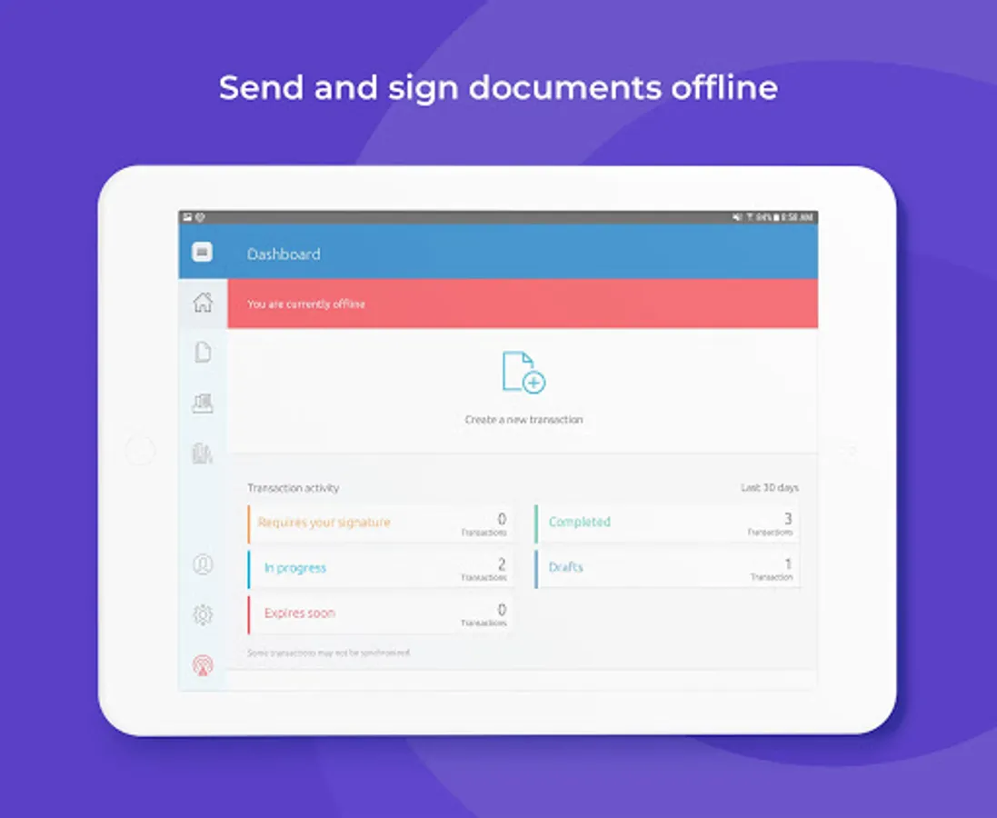 • Offline access to transactions with the ability to create and esign PDF documents when an internet connection is unavailable. Transactions are automatically synchronized once the device is back online