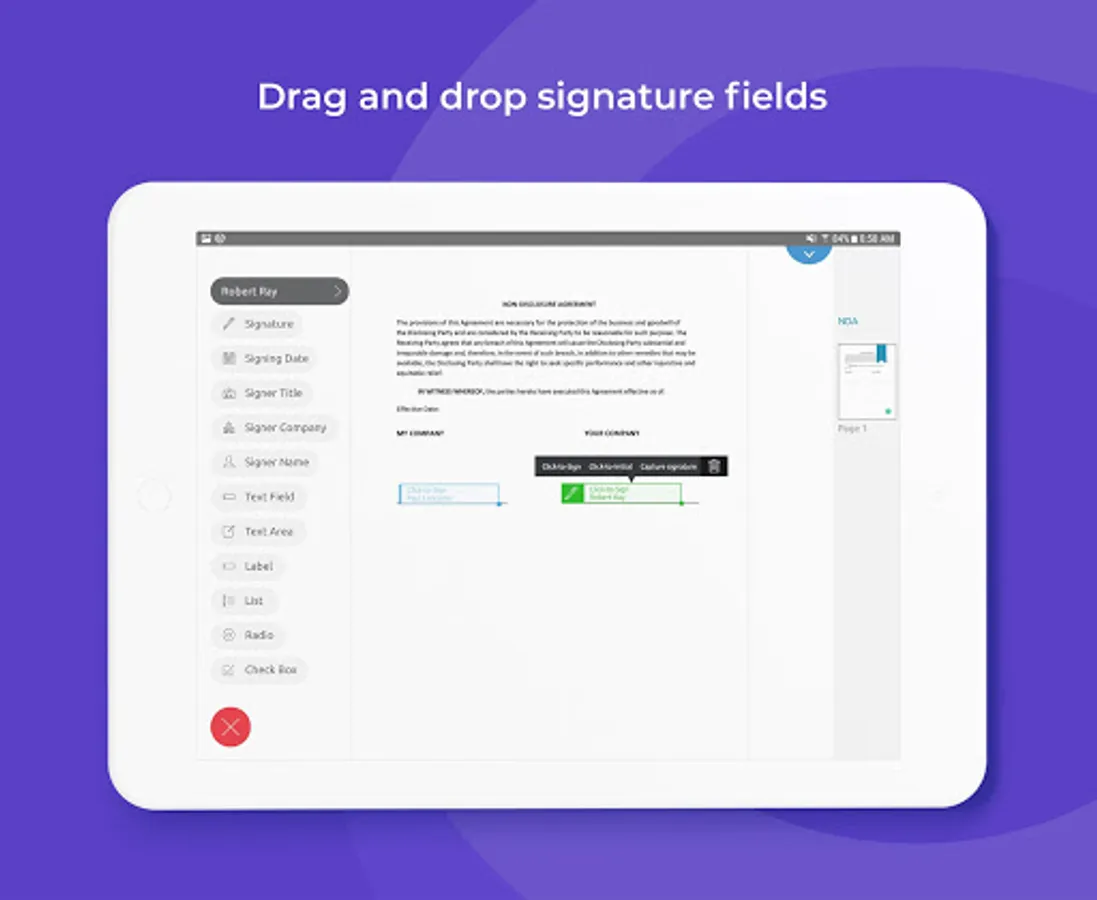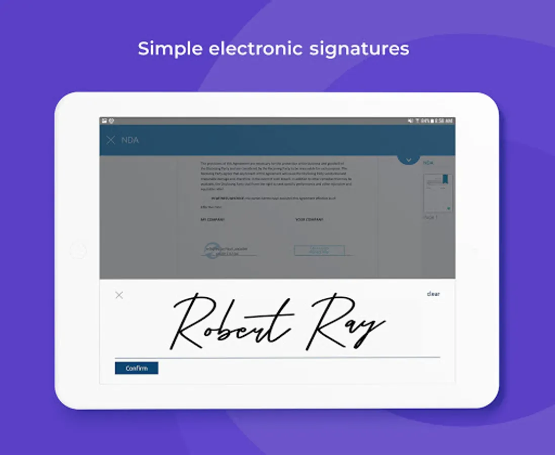 • Add e-signatures to confidentiality agreements, underwriting forms, startup trademark papers, and any NDA.