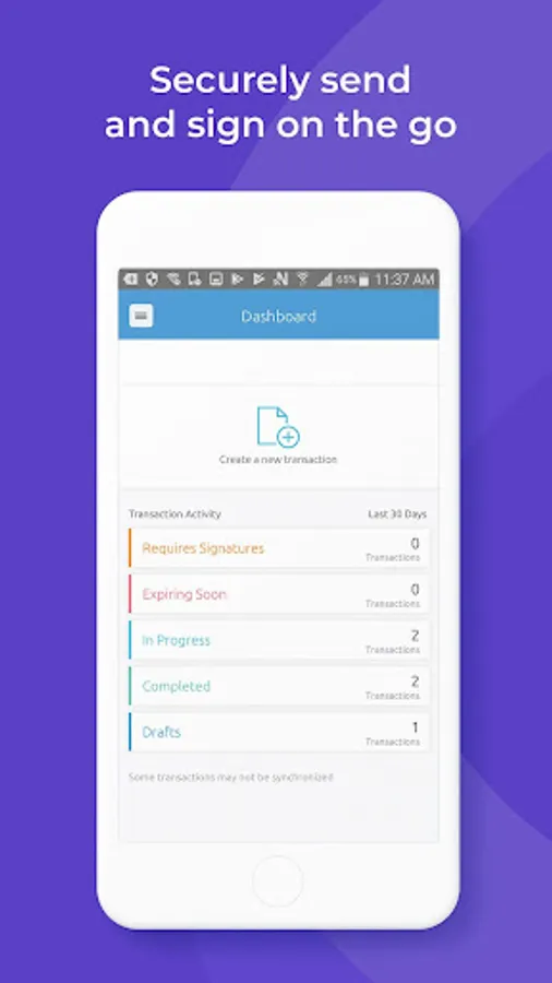 • Transactions from your OneSpan Sign Web account are mirrored in the Android app and vice-versa.