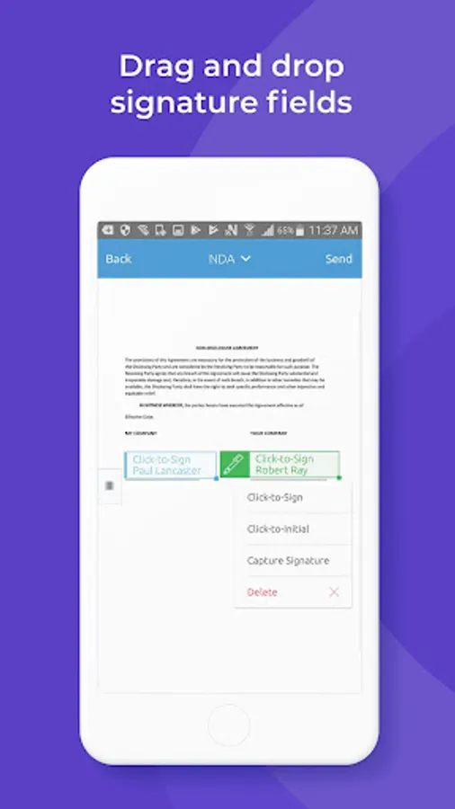 With the cleanest user interface, OneSpan Sign gives you the power to securely prepare, send and sign documents on the go from your Android smartphone or tablet.