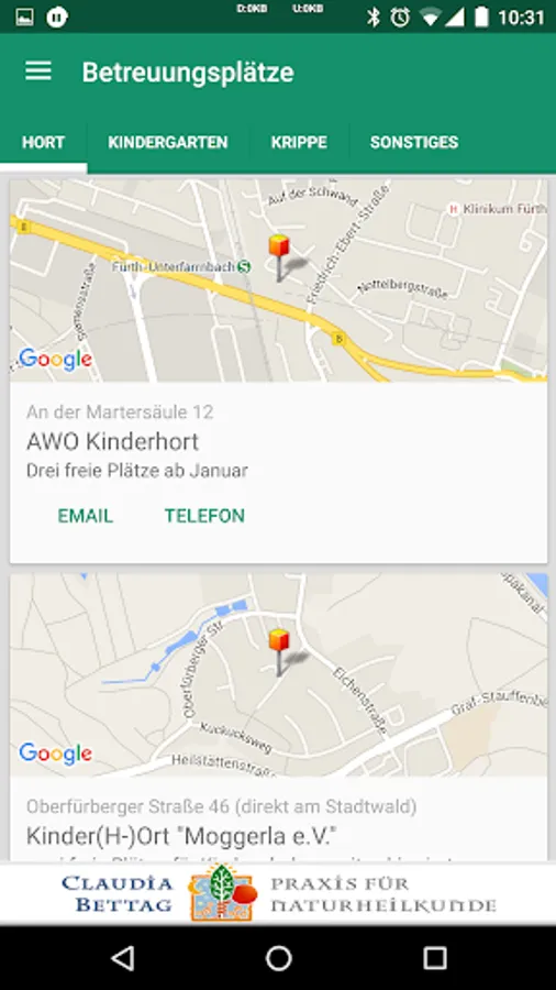 - care places: find free cribs, nursery school and after-school courses in Fürth.