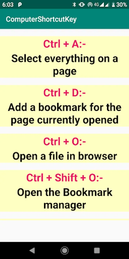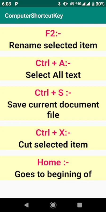 Computer Shortcut Keys is educational application provide different many shortcuts tricks so that you can increase your work speed.
