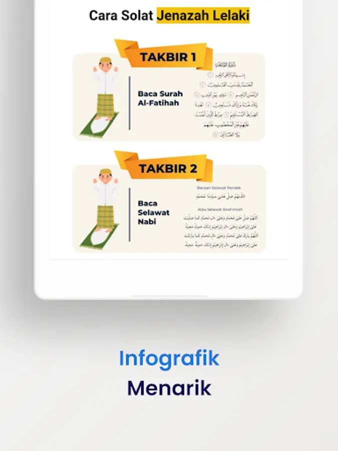 This is a complete guide on how to perform funeral prayers in Malay. You will be guided to perform funeral prayers until completion. This guide is loaded with various infographics to make it easy to understand.