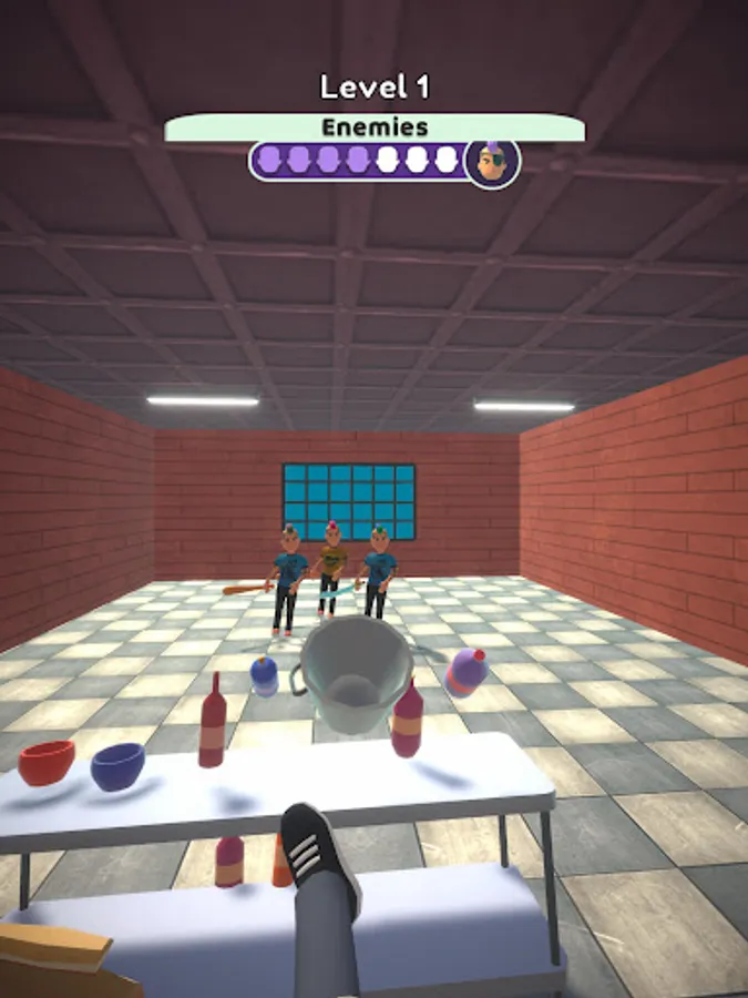 Kick your enemies directly if you want, or kick the items towards them. Your choice.