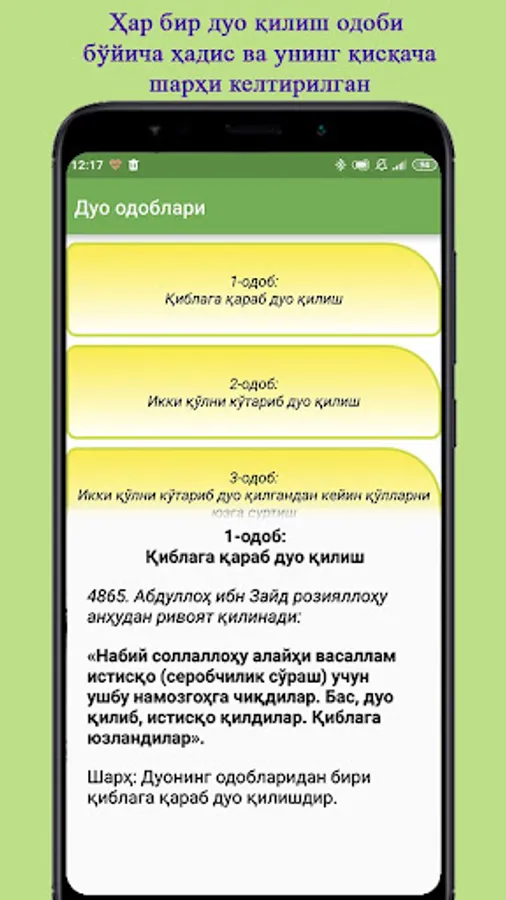 - duo approve (Kar bir duo Qilish approve by Beyich Kadis wa uning қisқacha sharҳi keltirilgan);