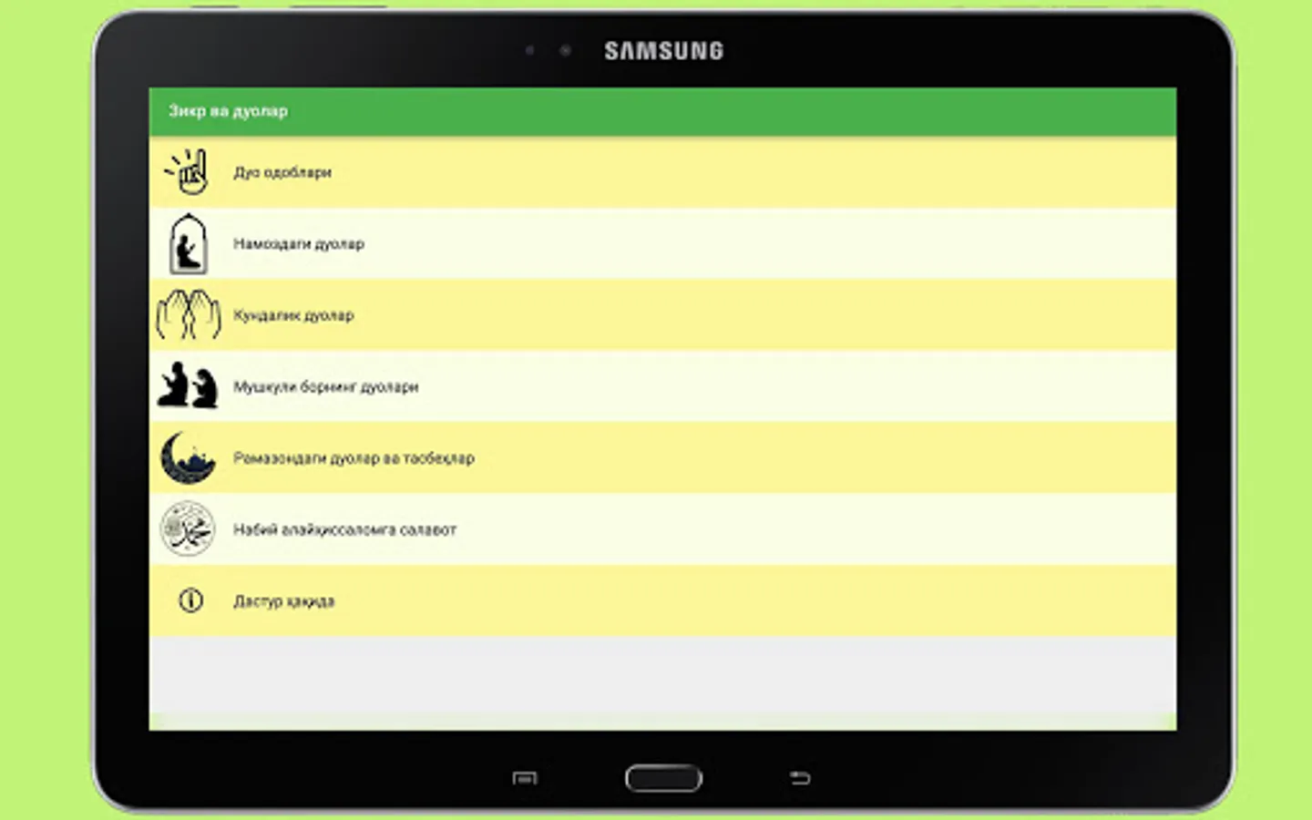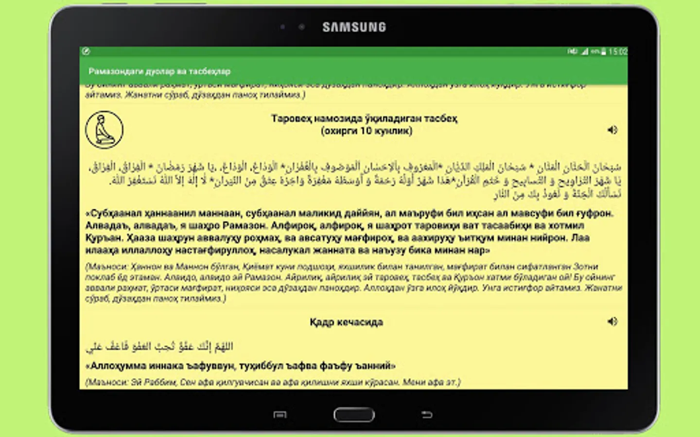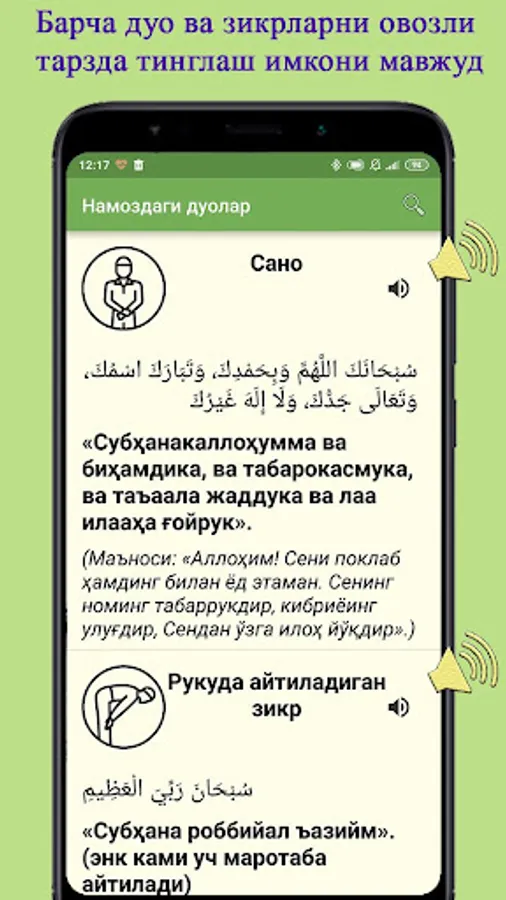 Dasturdagi barcha dhikr va duolarni ovozli tarzda tinglash imkoniyati mavjud.