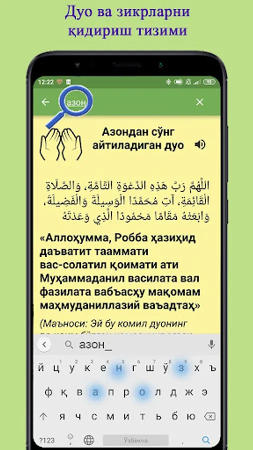 Foidalanuvchilarga duo wa zikrlarni қidirib topishda қulaylik tadim etish masқadida, ularning nomi bayicha, famous of imkoni jory ethylgan.