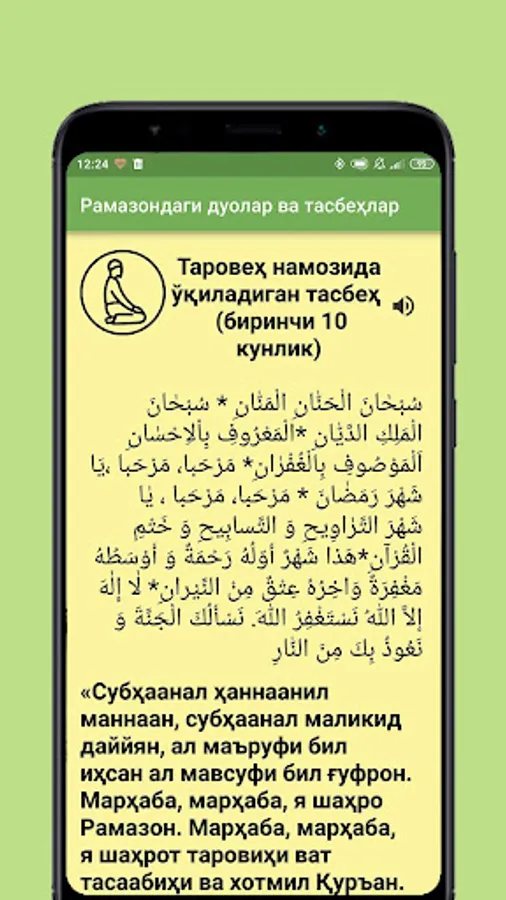 Barcha dhikr wa duolarni arabcha matni, бекzbekcha ўқilişi wa ularning malolari keltirilgan.