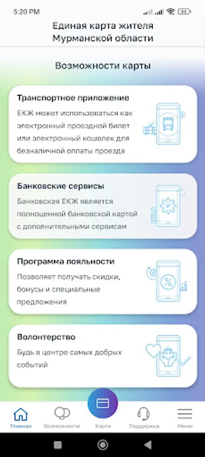 An application for holders of the Unified Card of a Resident of the Murmansk Region - a multifunctional plastic card that serves as a personal electronic key to a variety of digital services. Using EJC, you can pay for goods and services, travel in public transport, receive money transfers and social benefits, as well as enjoy discounts, bonuses and special offers from popular retail chains and earn cashback.