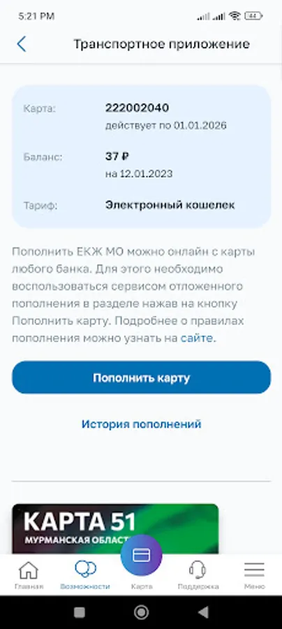 - check the balance of the electronic ticket and replenish it;