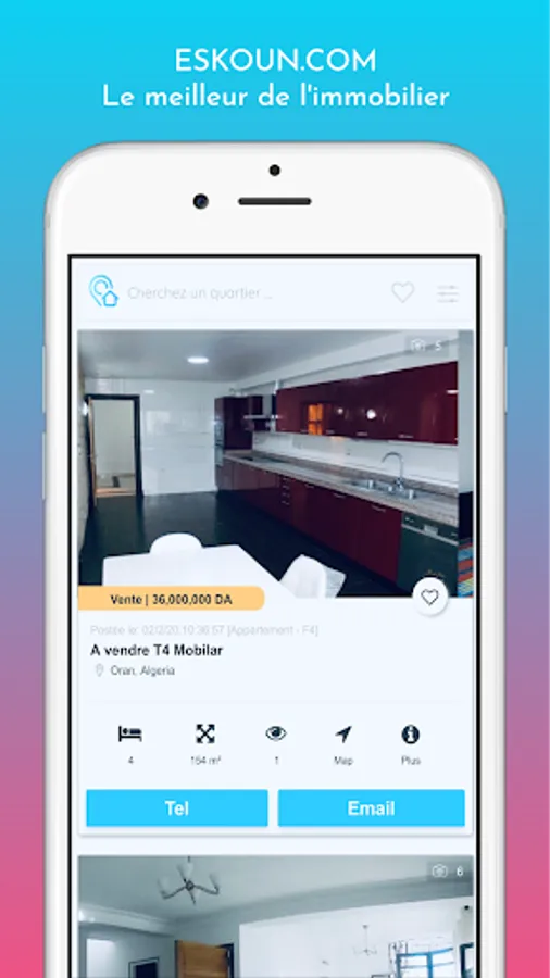 Eskoun.com est une plateforme specialisée dans la recherche d'annonces immobilières. La plateforme a été conçue de telle sorte que les vendeurs, acheteurs, locataire ou bailleurs aient la vie plus simple. Eskoun.com permet une recherche intuitive et donc rapide, se focalisant sur des annonces de qualité.
