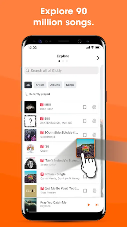 When adding songs, other apps give you three choices: play now, next, or last. Giddy gives you unlimited choices. Easily put songs from search or your library onto the queue via a simple drag and drop gesture. Want to play a song ten minutes from now? With Giddy it's simple. Just put it there.