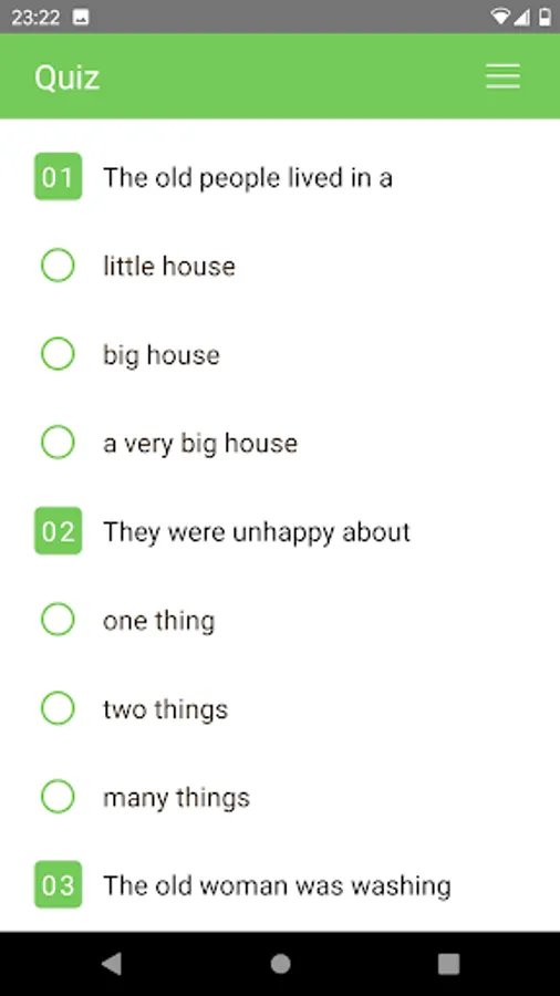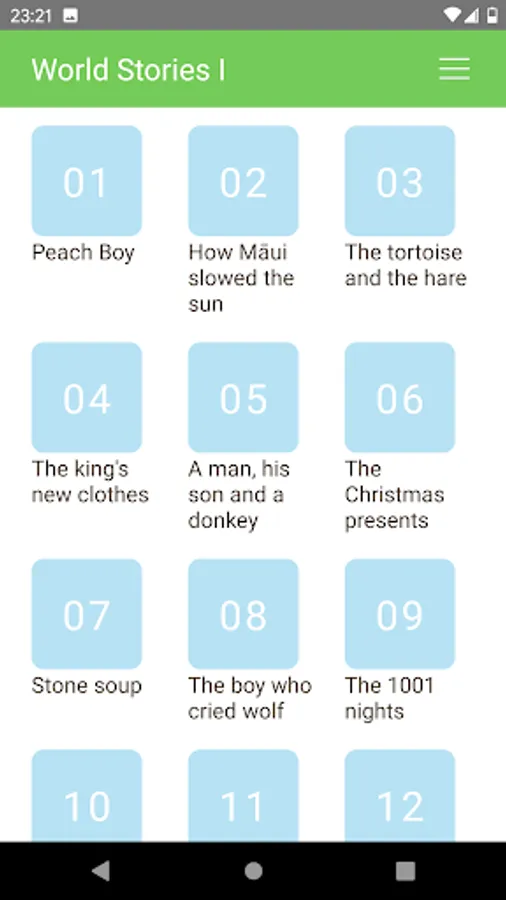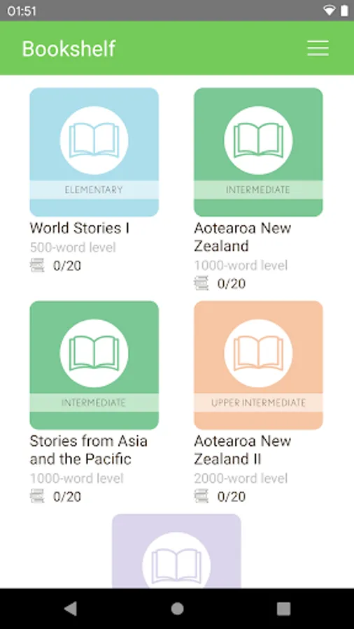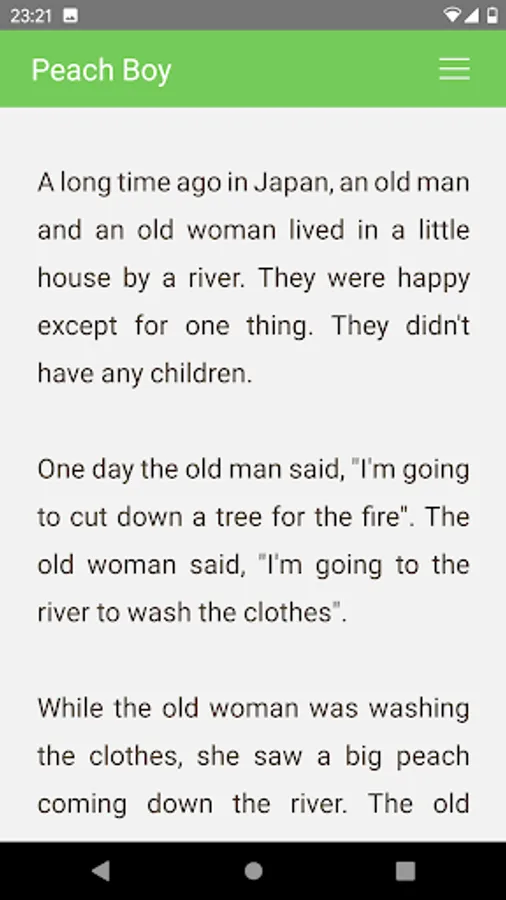 This app has many stories. Each story is written using easy words. For example, if a story is written at the 500-word level, it means the story was written using the 500 most-frequent words in English.