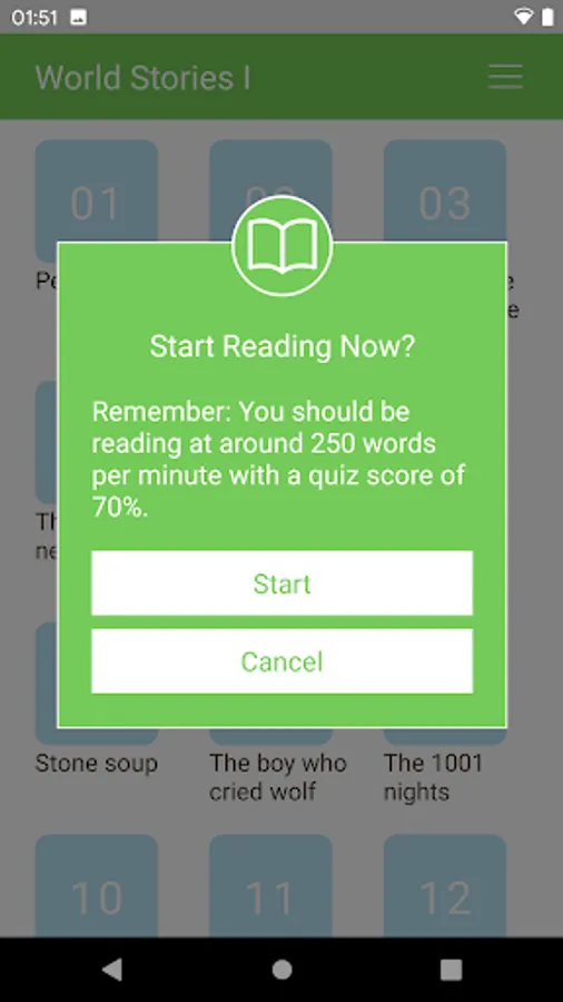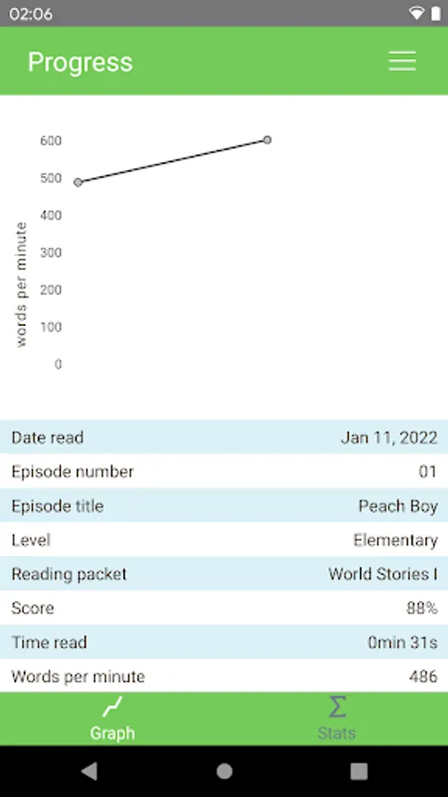 The app measures how long it takes you to read each story. To do so, it uses standard words per minute. It also checks if you are speed reading correctly by giving you feedback. This feedback helps you to continue to practicing speed reading effectively.