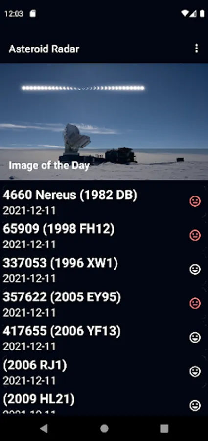 -Asteroid Radar also shows NASA Picture of the day on the main screen,the user can click on it to get a short message describing it.