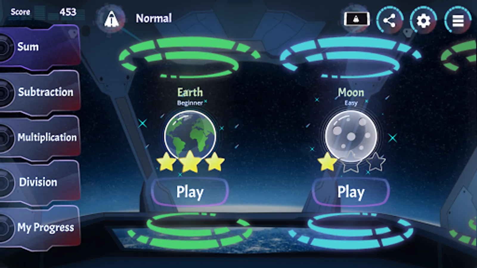 Solve math exercises in a fun way, discovering new planets and moons traveling through space.