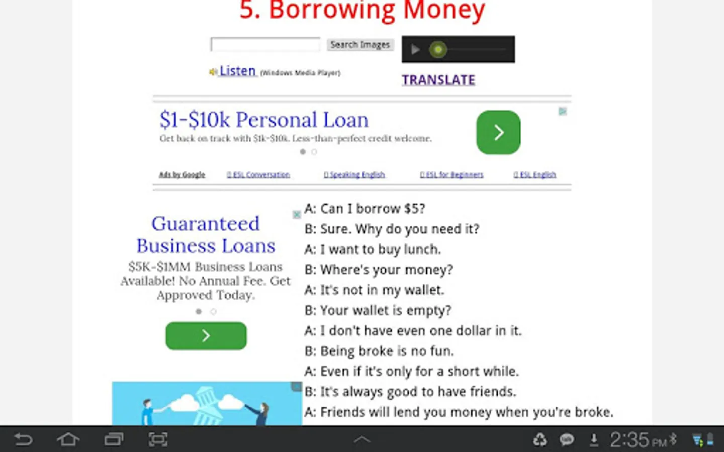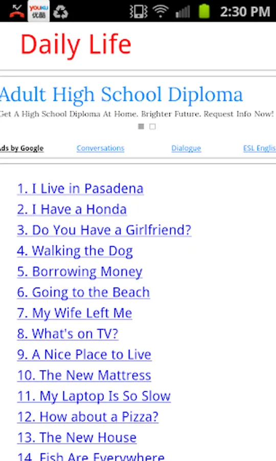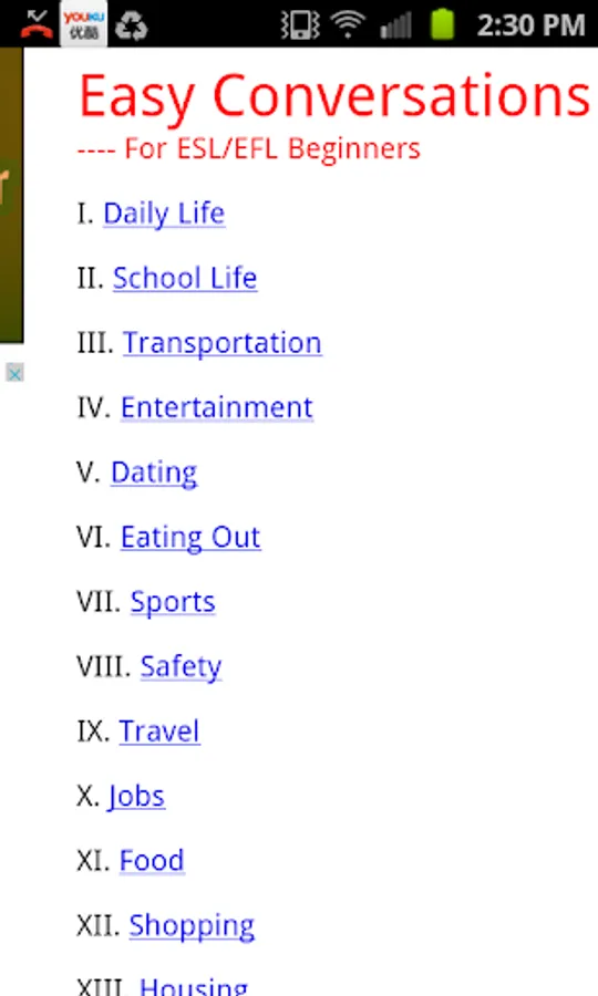 ESL Fast Speak is a free app for people who want to improve their English speaking skills. In this app, there are hundreds of interesting, easy conversations of different topics for you to choose from. All the dialogues were read by native speakers of American English, and recorded by professionals, The dialogues are interesting, and the quality of the audio is high.