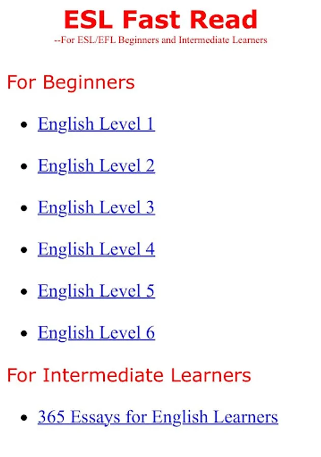 ESL Fast Read is a free app for people who want to improve their English reading skills. In this app, there are hundreds of interesting, easy, short stories and essays. You can listen to each and do the exercises. You can read and listen to each article again and again until you remember them. A few weeks later, you'll find your listening skills are improved and your reading speed is faster.