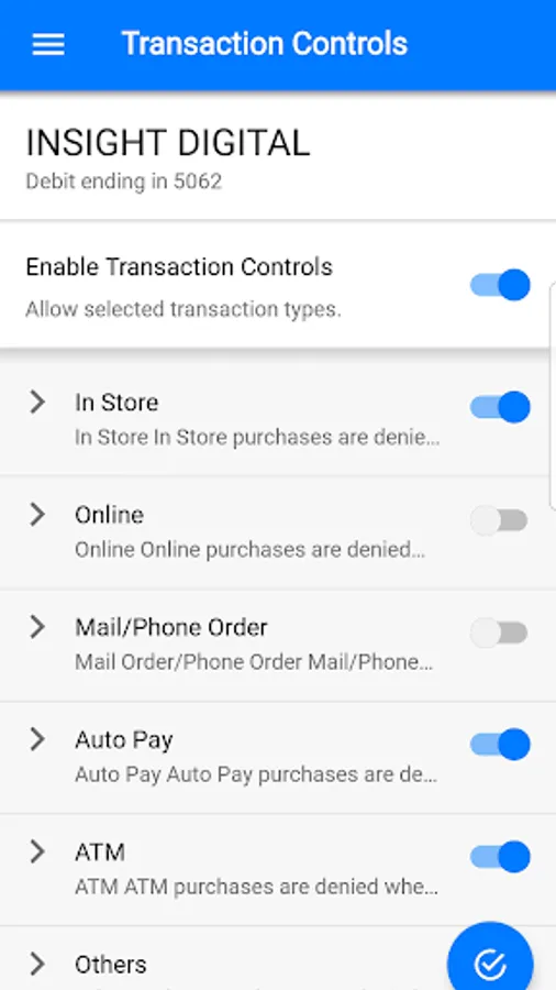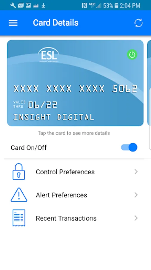 ESL Card Control allows you to manage your ESL Debit or HSA cards. You can turn your card off or on, add spending controls by amount, merchant or location and receive immediate transaction alerts.