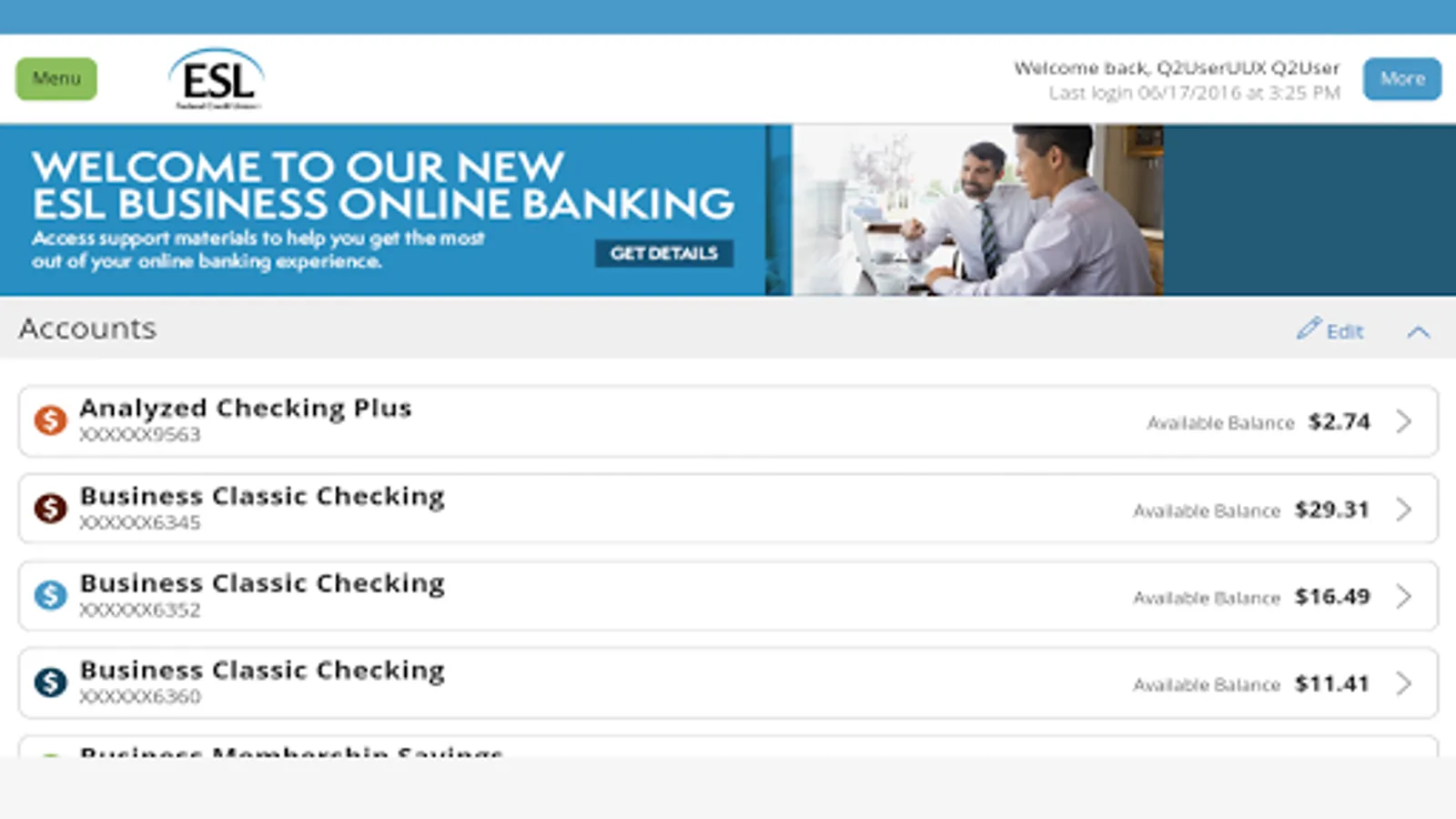 Please note - you must be enrolled in ESL Business Online Banking to use this app.