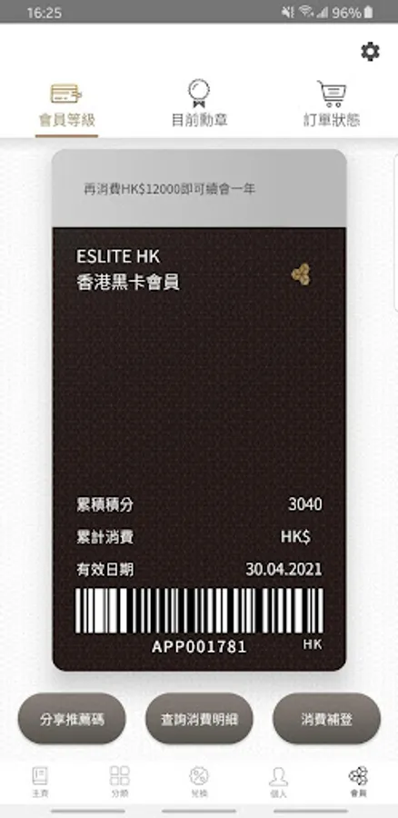 * Mobile membership card: provide Hong Kong Eslite people mobile membership card to use and apply to become a white card member in real time