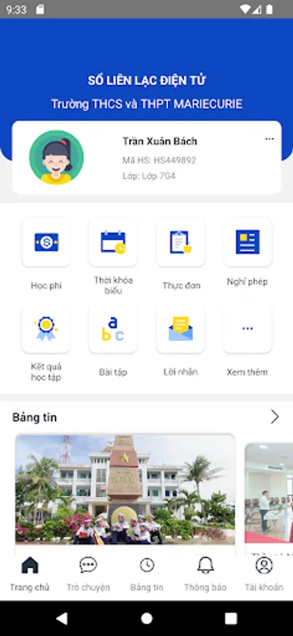 - Help parents keep track of student information, school announcements (Receivables, academic results, school general announcements), school news.