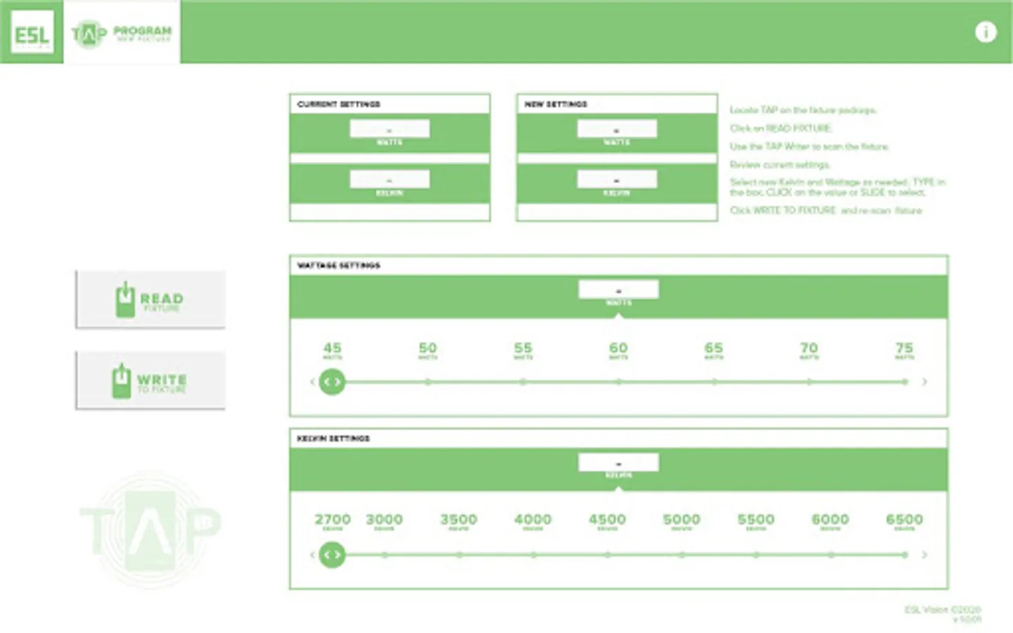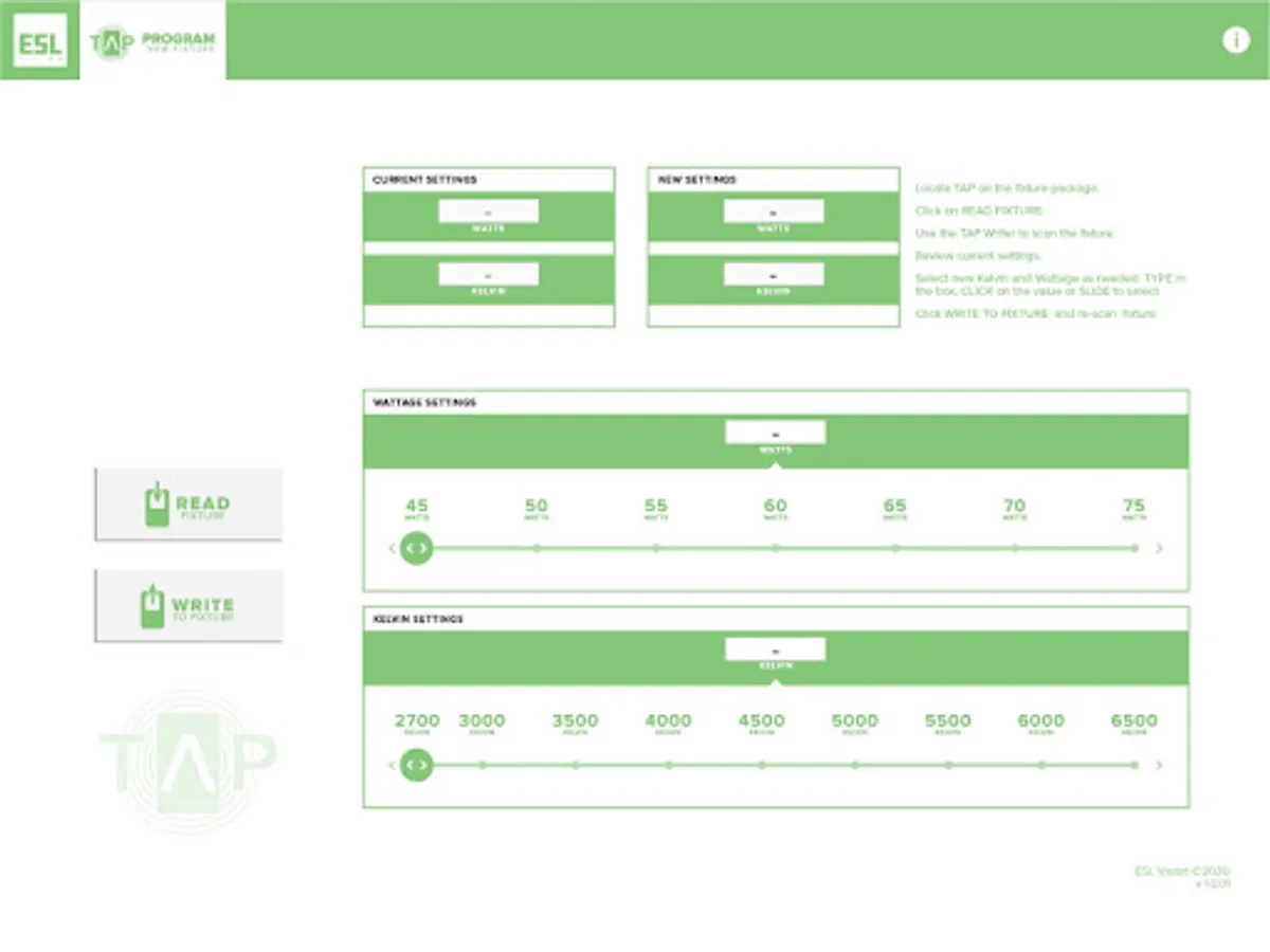 This technology allows distributors to set the wattage and kelvin for any fixture without removing it from the packaging, or supplying power. Simply use the TAP application to set your desired wattage and kelvin utilizing your built-in NFC or with the TAP wand, available only from ESL Vision. Distributors can now reduce inventory and maximize cash flow while increasing SKU availability and eliminating lost opportunities.