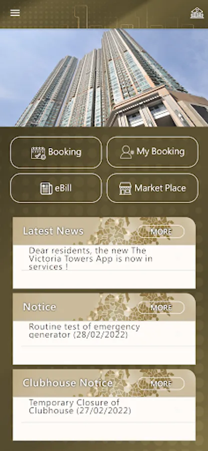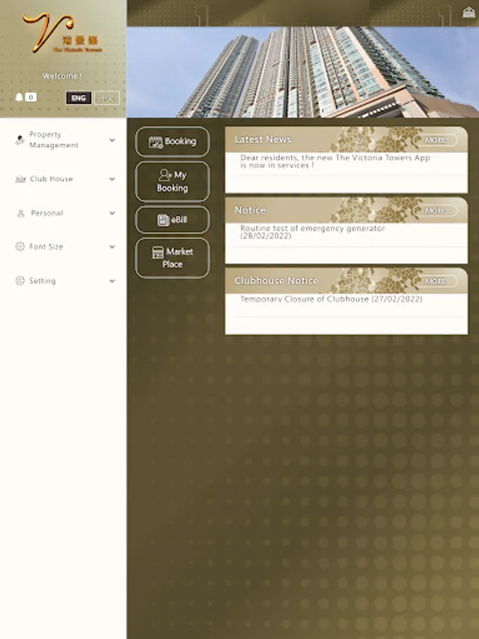 Dear residents, The Victoria Towers property App is now has a brand new look, providing more features and more convenience. You can login the app via your mobile phone or tablet to make facility reservations, receive our instant messages, check management fee eBill, etc. You can also use our Market Place to publish a small ad, please experience the new platform for Estate Management services immediately.