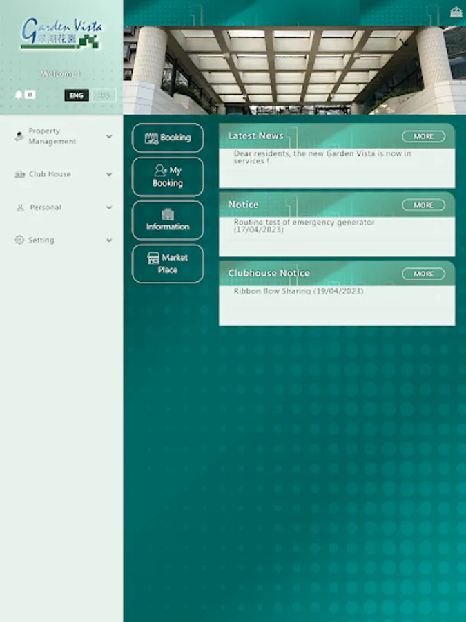 Dear residents, Garden Vista property App is now in service. You can login the app via your mobile phone or tablet to make facility reservations, receive our instant messages, you can also use our Market Place to publish a small ad, please experience the new platform for Estate Management services immediately.