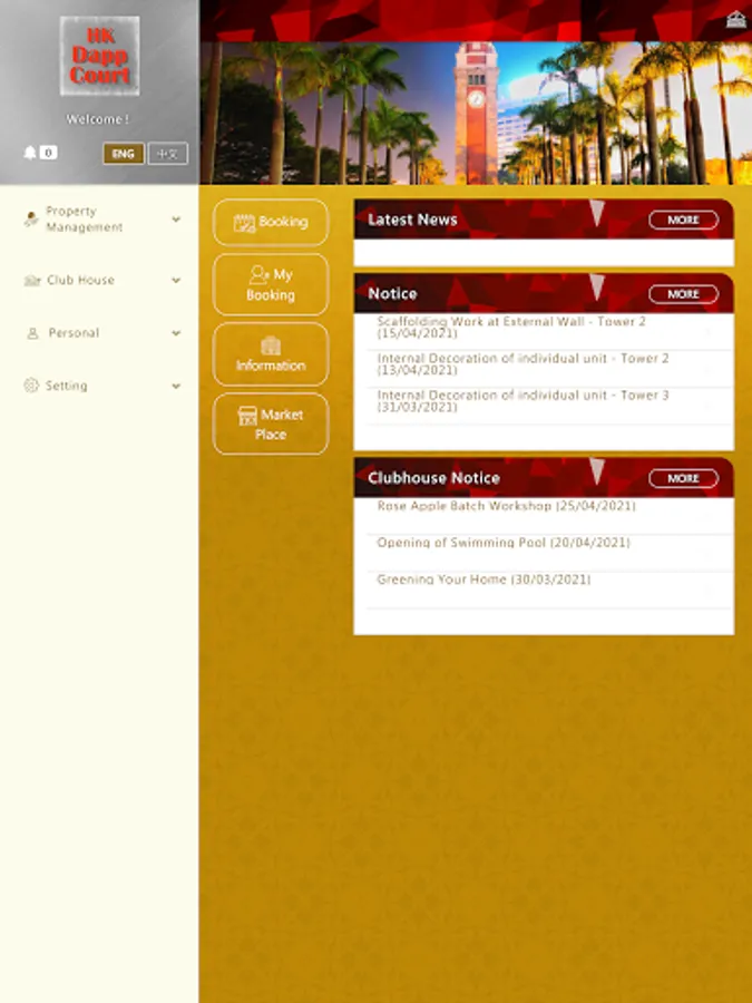 Dear residents, the new HK Dapp Court App is now has a brand new look, providing more features and more convenience. You can login the app via your mobile phone or tablet to make facility reservations, receive our instant messages, check management fee eBill, etc. You can also use our Market Place to publish a small ad, please experience the new platform for Estate Management services immediately.