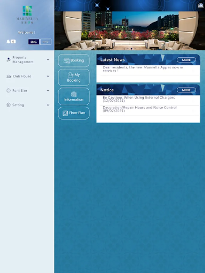 Dear residents, Marinella App is now in service. You can log in via your mobile phone or tablet to make facility reservations, receive the property's latest information and our instant messages and check estate notices, etc. Please experience the new platform for Estate Management services immediately.