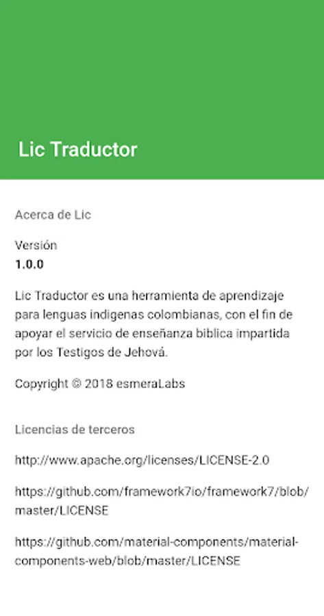 Lic Traductor is a learning tool for Colombian indigenous languages, in order to support the biblical teaching service taught by the Jehovah's Witnesses.