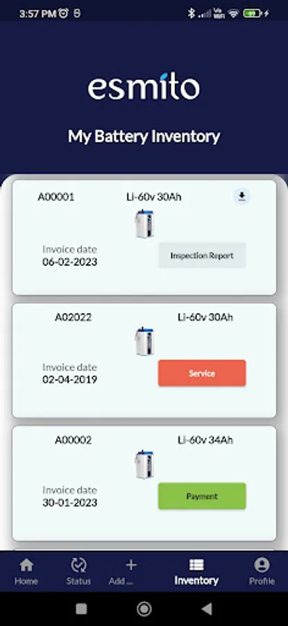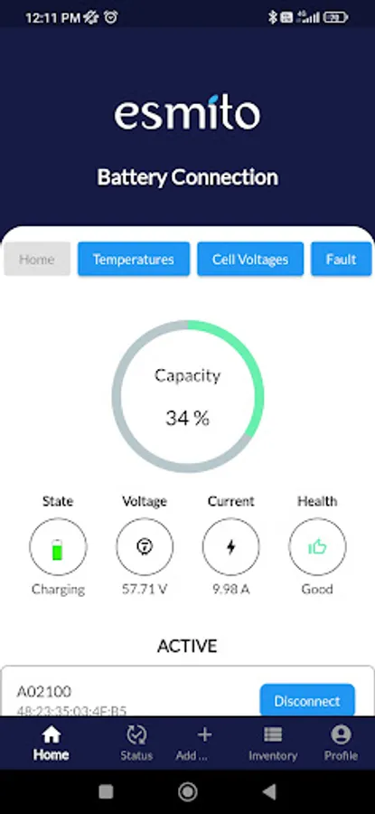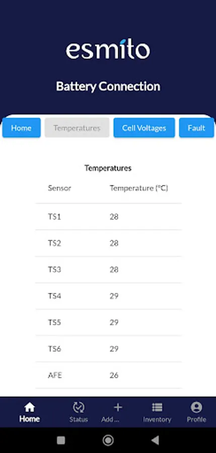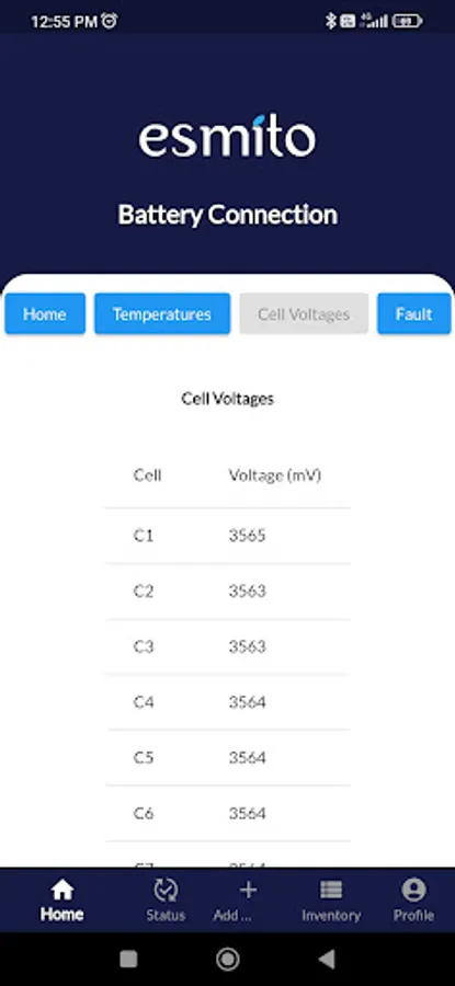 Esmito Battery mobile app let you connect with your smart battery, track services, manage battery inventory, register complaint, get SOC, Voltage, Current, Battery Health, Sensor's Temperatures, Cell Voltages, Battery Fault, etc.