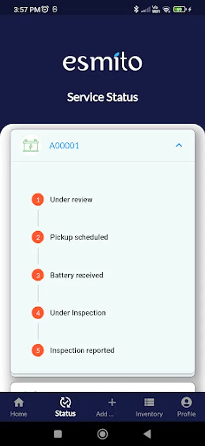 Using Esmito Battery app user can keep track of their current service request .