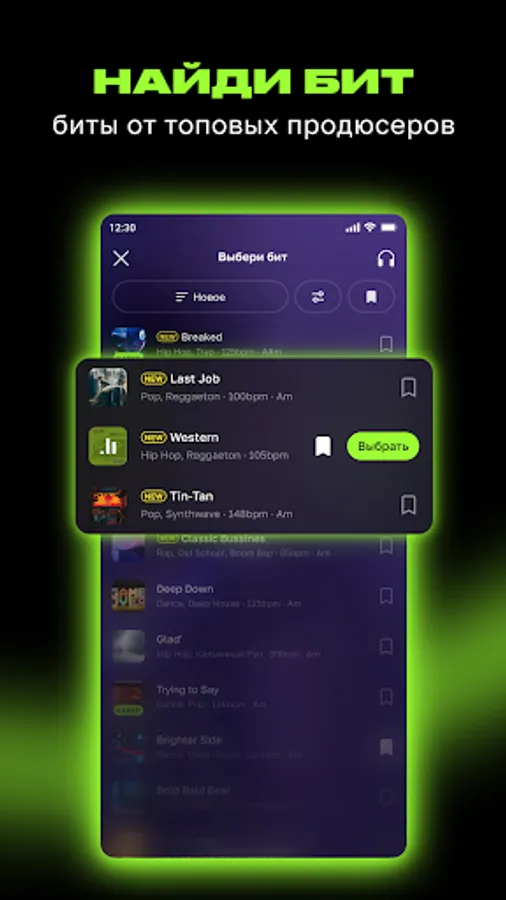800+ original beats of different genres and styles from top music producers. Beats for music are diverse, and the library is constantly updated and you can always find a beat that suits your song. The recording studio gives beatmakers the ability to create beats to music and send it to us to appear in the application, where hundreds of demos will be recorded on it.