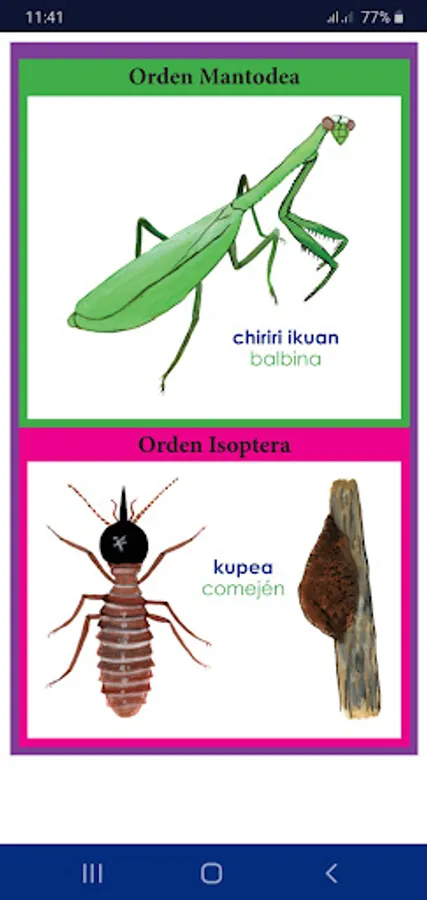 This interactive educational application features drawings of the local fauna of the Amazon rainforest of Peru, with the names of the animals in the Kukama language and in local Spanish, accompanied by audio clips in the Kukama language that are played upon tapping the image of the animal . The animal species are taxonomically organized according to division, order, and family to which they belong. The main objectives are to encourage the revitalization of the Kukama language and to promote the intergenerational transmission of traditional ecological knowledge, and can also serve to learn the scientific classification of the Amazonian fauna.