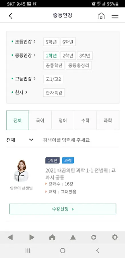 Korean/ English/ Mathematics/ Social Studies/ Science