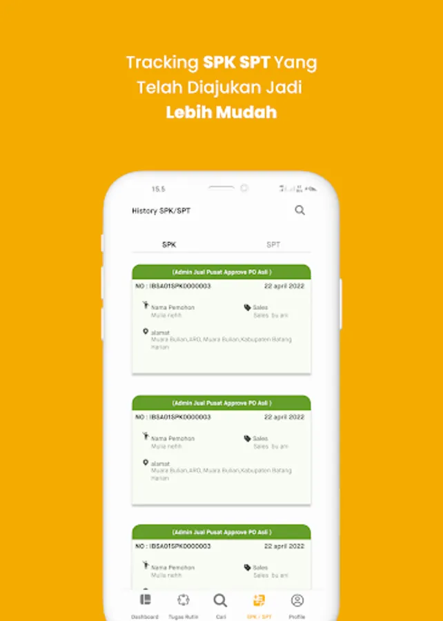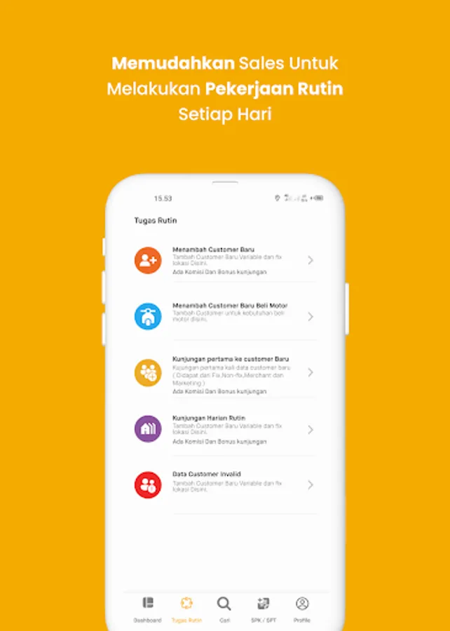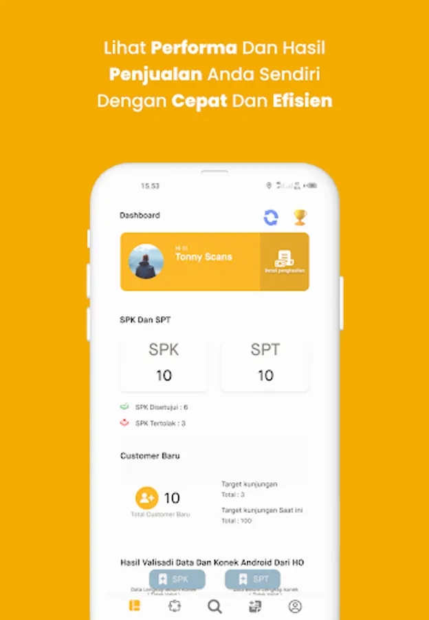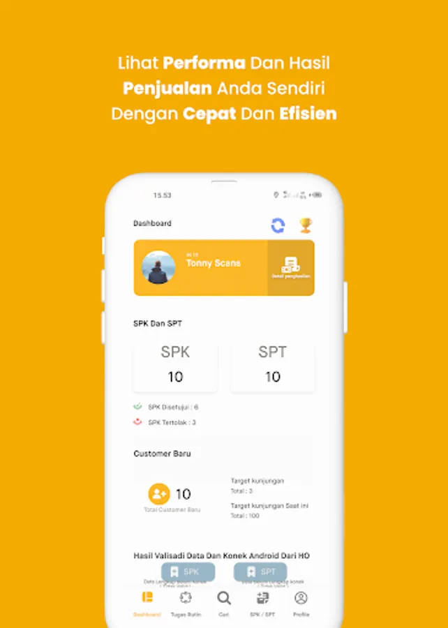 The Jago Motor application is intended for sales, which makes it easy to store customer data, search for customer data, view scheduled visits to customers and make SPK or SPT for customers who will buy motorbikes. With this application, sales can see the history of sales transactions that he has done and see the overall sales report.