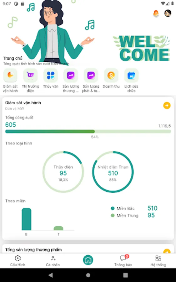 Solution Monitoring and monitoring the operating status of power plants in real time. Including information about electricity market, hydrology, output, revenue of the Corporation/power plant