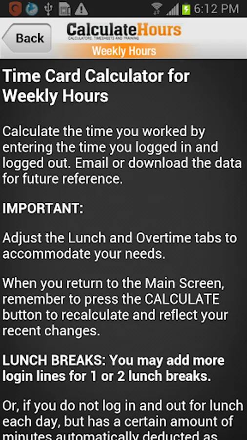 Description: Advanced Time Card Calculator for Weekly Hours Calculate the time you worked by entering the time you logged in and logged out.