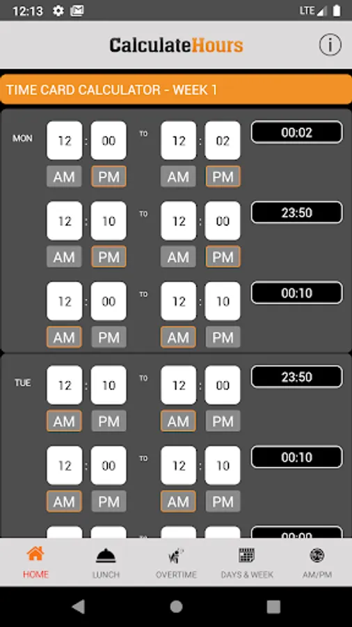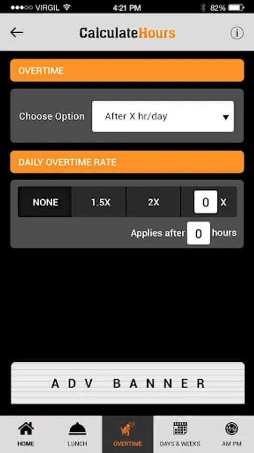 Overtime pay: you may select 1.5x, 1.75x or 2x, in the Overtime Tab.