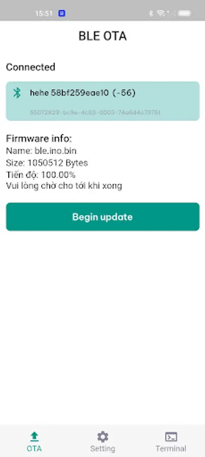 Reference library at: https://github.com/daonguyen207/arduino_ble_ota
