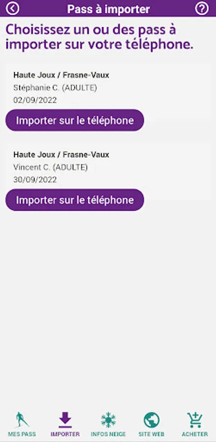 The app works offline. Remember to import the Pass (s) purchased with your file number and the first letters of your name into the application.