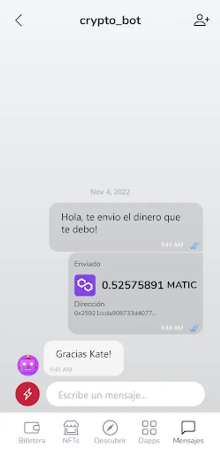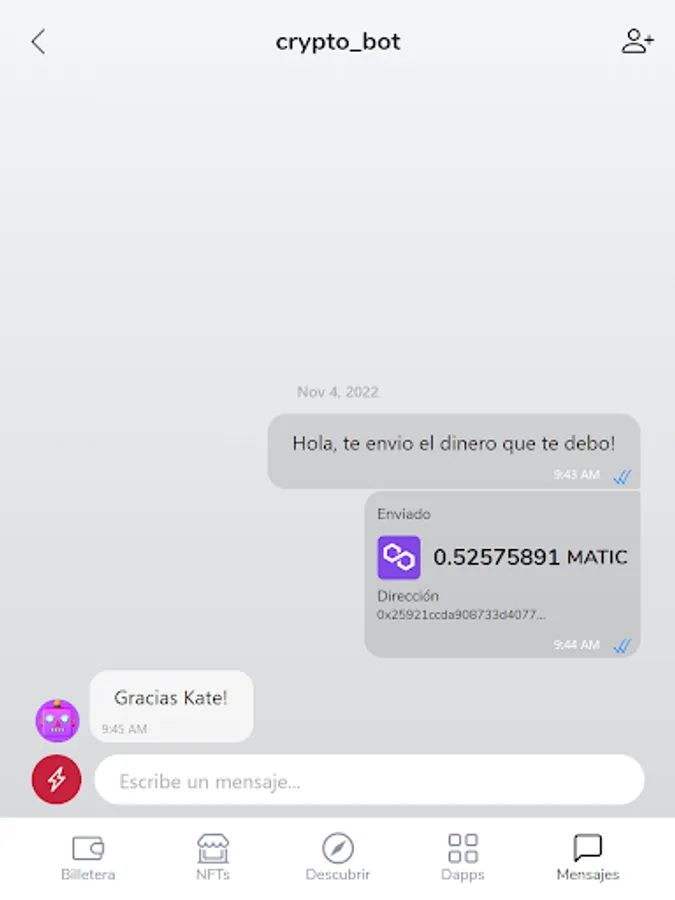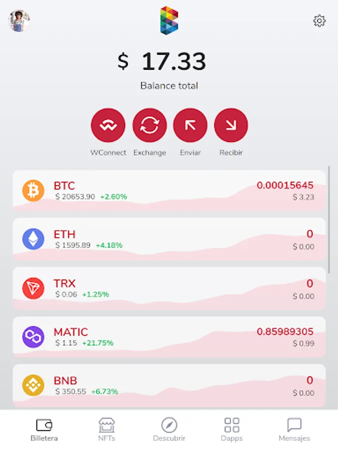 Connect to the crypto world with Espacio Bitcoin Wallet. Send, exchange and receive cryptocurrencies, explore the world of Dapps (Wallet Connect) with our integrated module, share and chat with your contacts, quickly send them money through our chat, share your experiences on our social network, create NFTs and offer them on our Marketplace. You can manage all your wallets in a single application, create your profile, etc.
