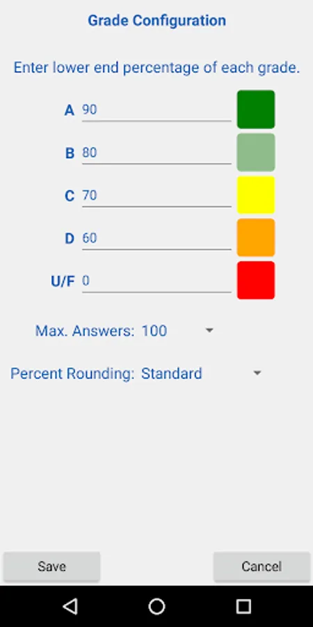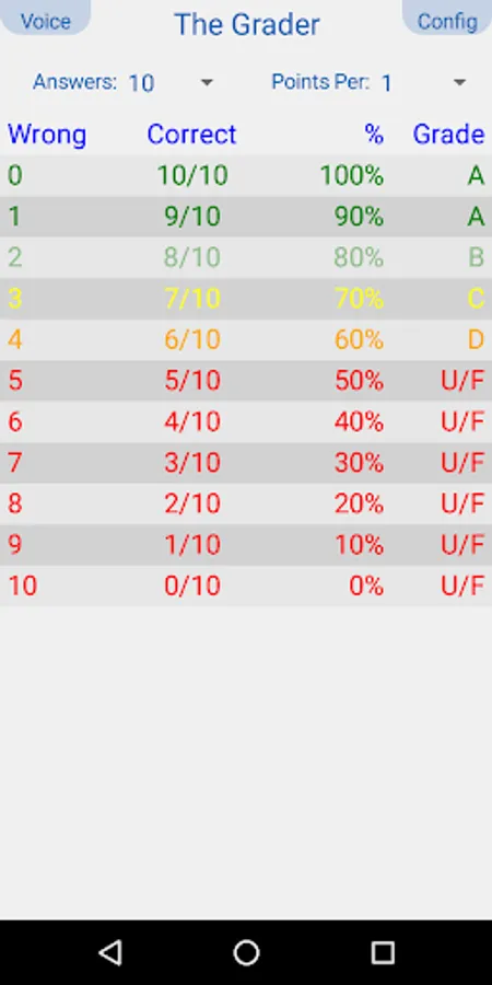 -Points per Answer can be set to 1 (full) or 2 (half). Useful if on some work you give half points for a partially correct answer.